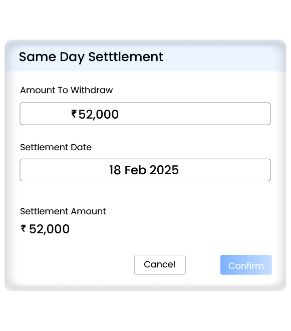 Enjoy easy, on-demand access to your earnings with our fast settlement solutions. Withdraw funds whenever you need them. Simplify financial operations with instant availability.
